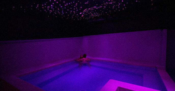 Il faut descendre au sous-sol pour profiter de la zone balnéo, équipée d’un sauna et d’un grand hammam. On y trouve également un vaste bain à bulle, qui fait honneur au nom de l’établissement !